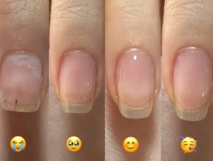 美甲後指甲斷裂通常發生在美甲後14-21天,主要原因是指甲本身韌性不足(如經常做光療、缺乏營養),或受到外力撞擊(如不小心碰到桌角、關門時夾到)。以下是補救方法: