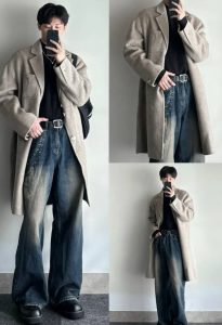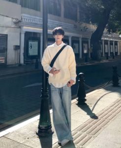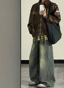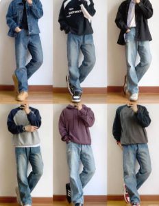 日系風格的牛仔褲通常版型偏寬鬆、水洗效果自然,追求舒適感和層次感。