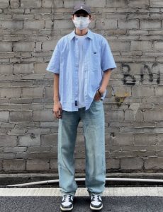 - 穿搭建議:搭配寬鬆的條紋 T 恤、帆布鞋、漁夫帽,或短版的日系夾克。多利用疊穿(T 恤+襯衫+外套)來增加層次感。