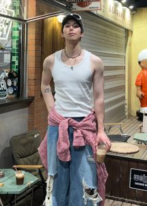 - 效果:背心露出手臂線條,適合健身或身材健碩的男生,淺牛仔褲中和背心的張揚感,顯得清爽不臃腫。