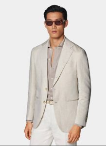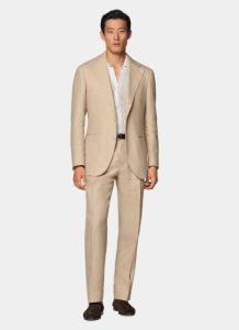 淺咖色格紋西裝外套(2800-4500 NTD)+ 白色襯衫(800-1500 NTD)+ 米色西褲(1000-1800 NTD)+ 棕色樂福鞋(1800-3000 NTD)。格紋元素增加了穿搭的靈活性,淺咖色溫和不張揚,適合各種風格的婚宴,搭配一條簡單的銀色項鏈,更能提升時尚感。