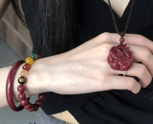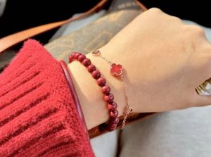 - 與金屬飾品:硃砂可以和純金、純銀等貴金屬搭配,視覺上非常高級!但要注意,如果搭配硬度很高的合金飾品,要小心它們之間的摩擦。