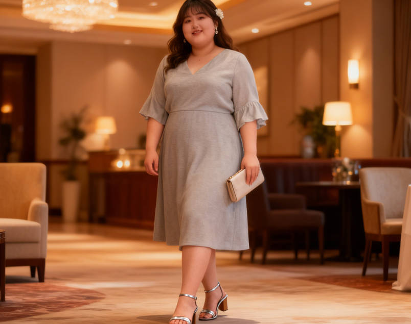 夏天的婚禮氣溫較高,肉肉女婚禮穿搭不僅要考慮遮肉,還要保證透氣清爽,避免悶熱不適。夏天挑選肉肉女婚禮穿搭時,面料的透氣性是首要考量,同時搭配淺色系、輕薄款的單品,既能帶來清涼感,又能呈現優雅的氣質。