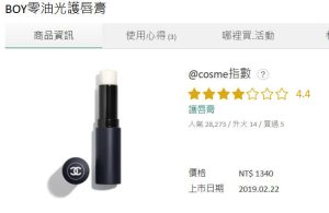產品推介:Boy de Chanel 零油光潤唇膏 (NT$1,340)/ 曼秀雷敦 男士潤色護唇膏 (NT$160)